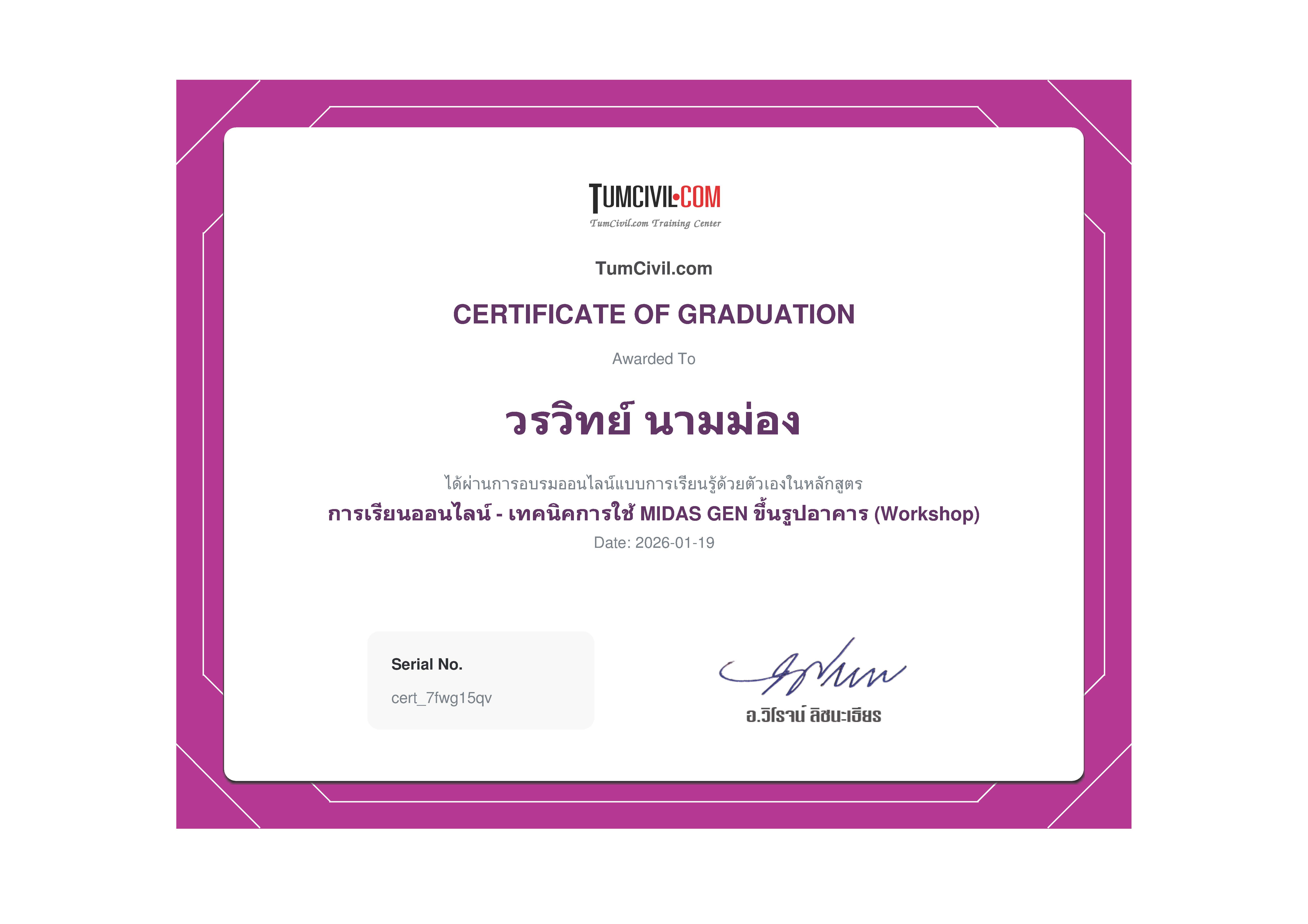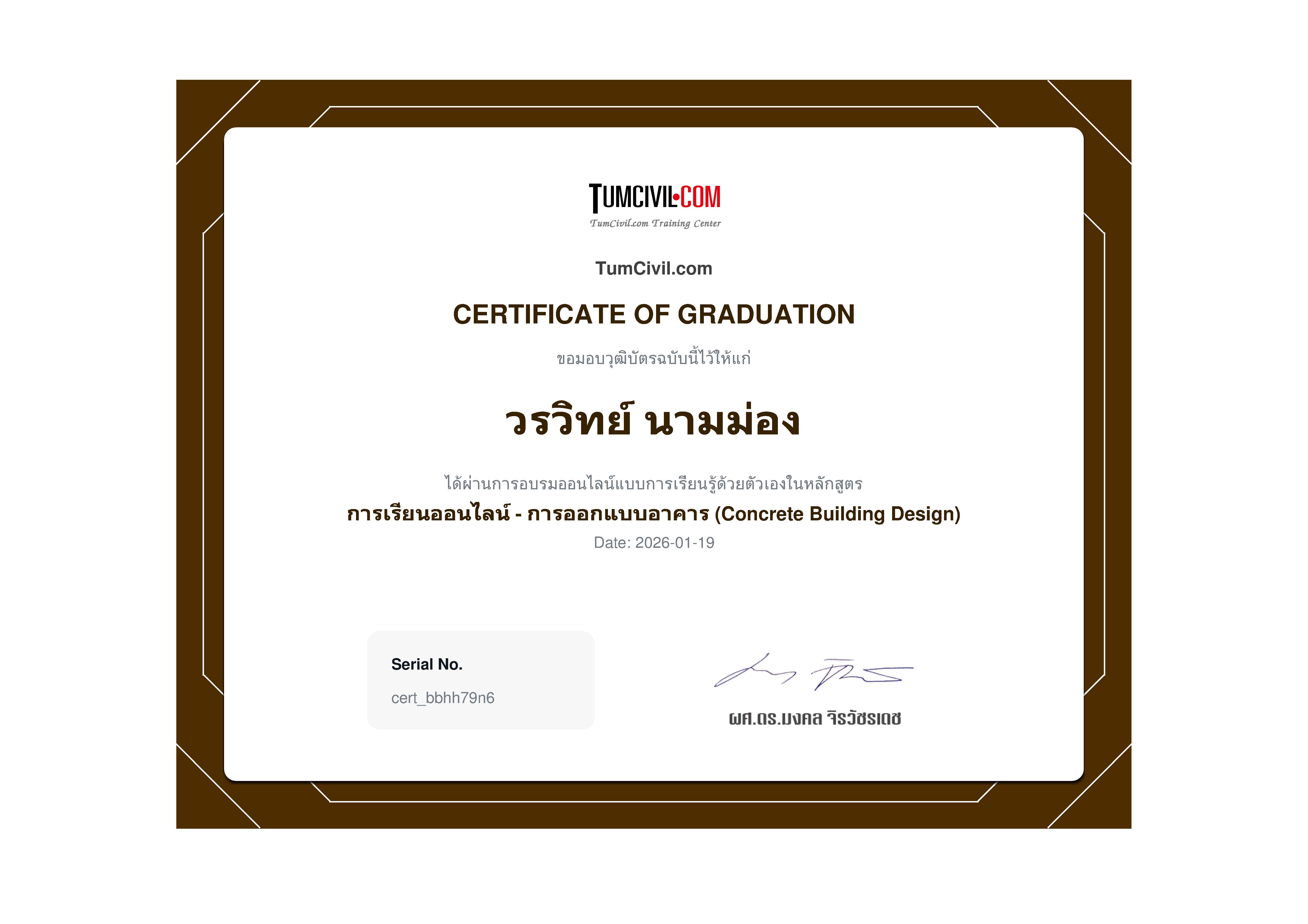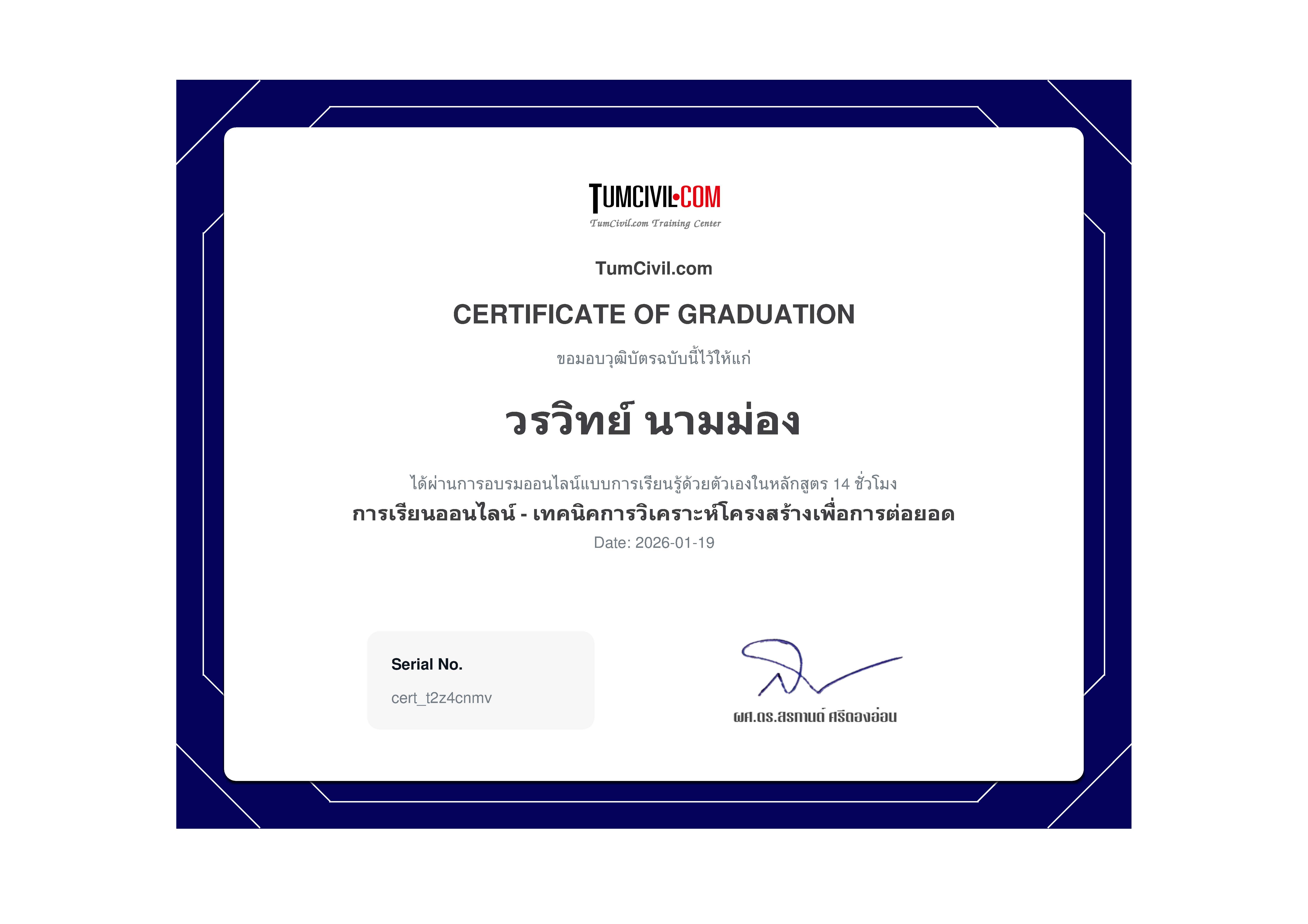 ใบรับรองประกอบวิชาชีพวิศวกรควบคุม ระดับภาคีวิศวกร สาขาวิศวกรรมโยธา