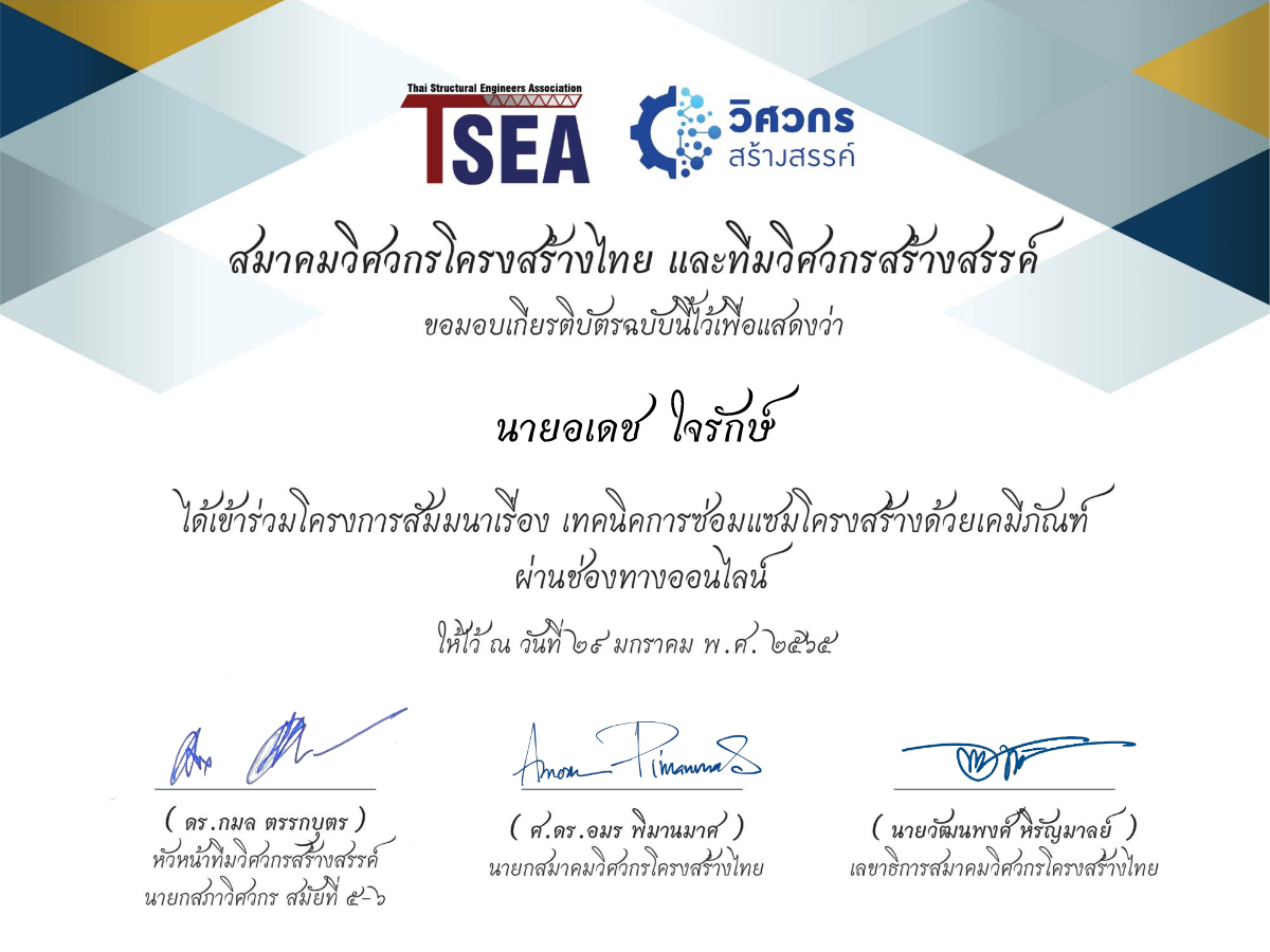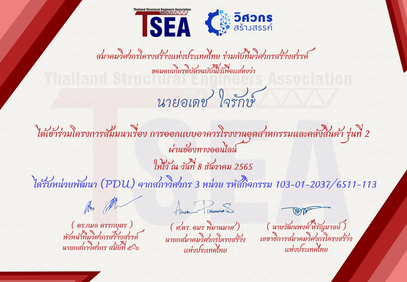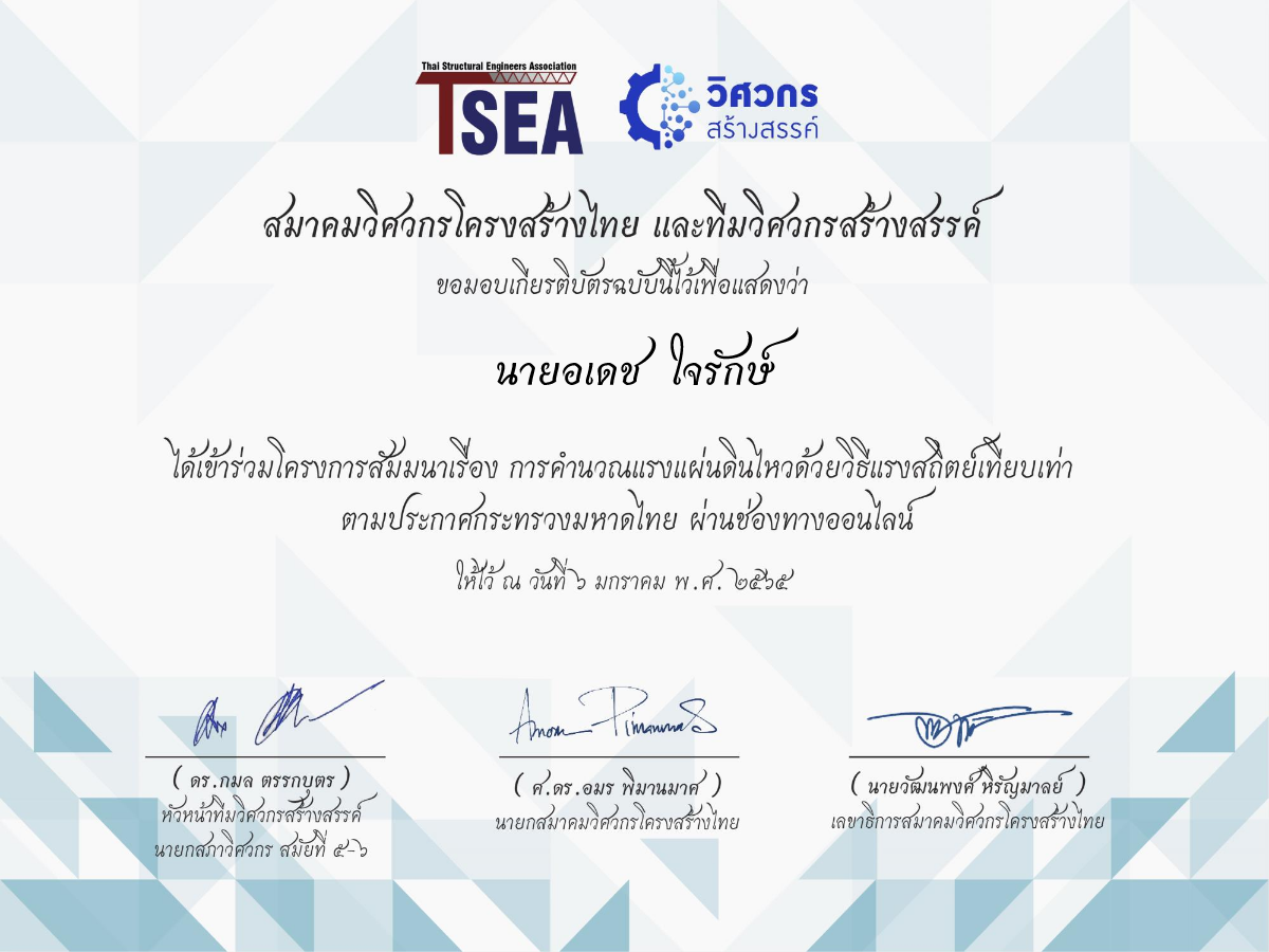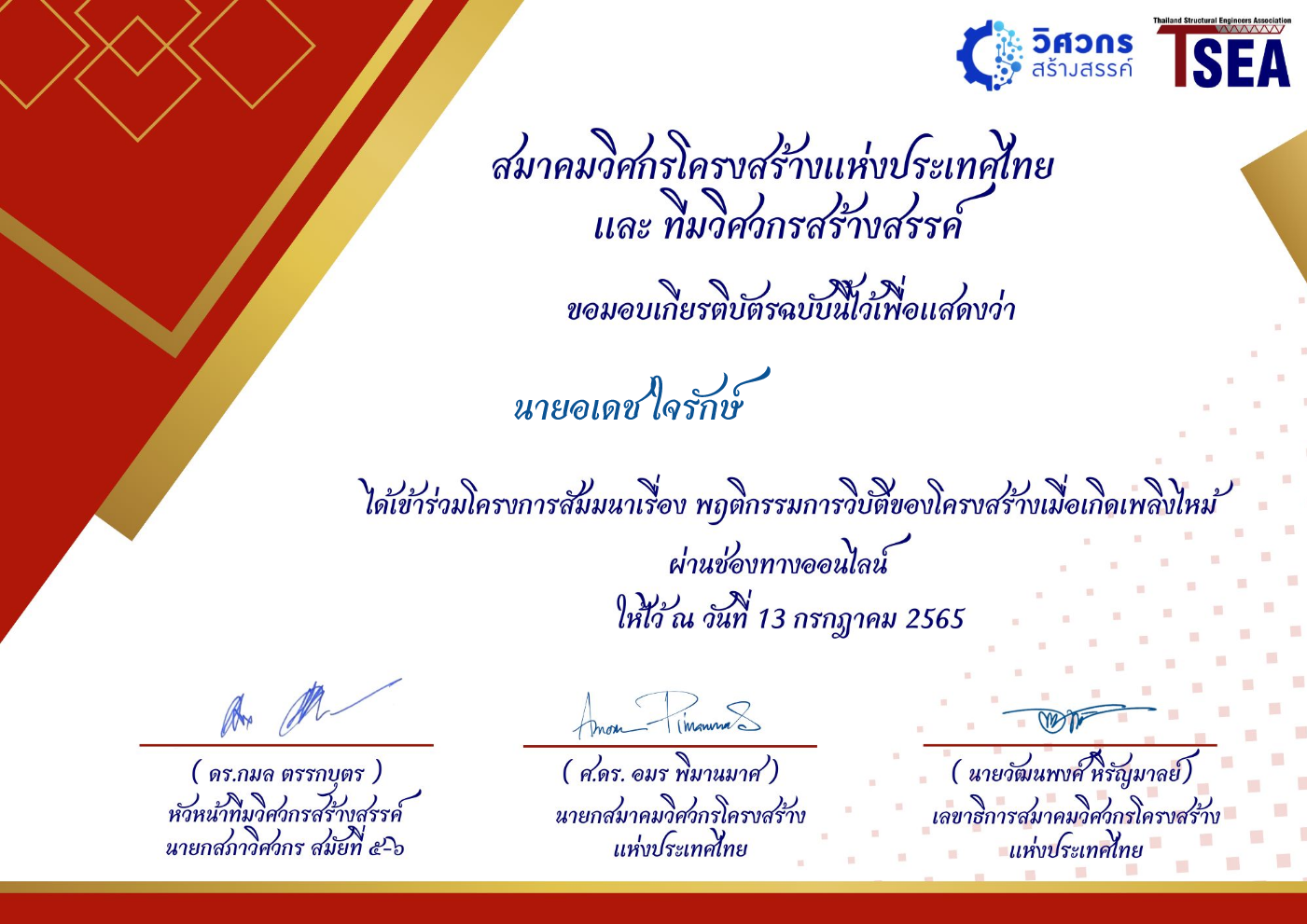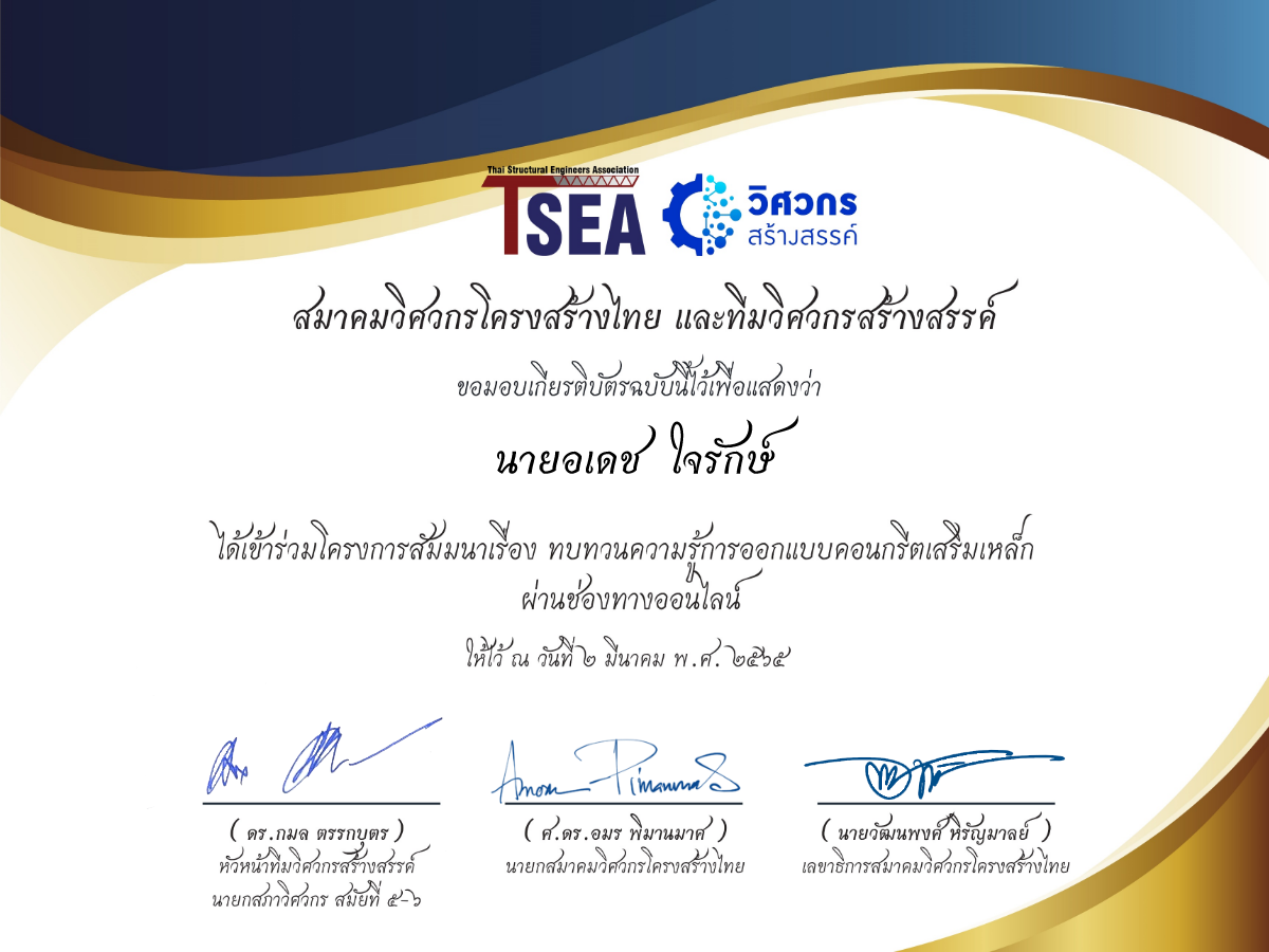 - High Rise Building Project, Bangkok, Thailand. Reviewed visual, Scanning rebar, Coring concrete and UPV. Furthermore, Advance analyses wind loads and earthquake loads, likewise, checked demand capacity ratio (DCR) for building post tension slab of 22nd floor of building and car park of building 2 floor level. - SPARROW APPARELS Co., Ltd. Project, Gazipur, Bangladesh. Advanced analysis and designed wind load and earthquake loads checked demand capacity ratio (DCR) for sewing industrial building (BLD. 1) and office building (BLD.2). Considering including advanced wind loads and earthquake loads (BNBC/Alliance/ASCE/ACI Code) using ETABS & spColumn (pca Column) model. - TRC New Boiler Plant (Thai Rayon Co., Ltd.) Project, Angthong, Thailand. Advanced analysis and designed wind load and earthquake load for the Boiler building, Conveyor FDN, and Coal storage bin FDN and New ash silo FDN. Considering including advanced wind loads and earthquake loads (ASCE/ACI/DPT (มยผ.) CODE) using ETABS & SAFE model.