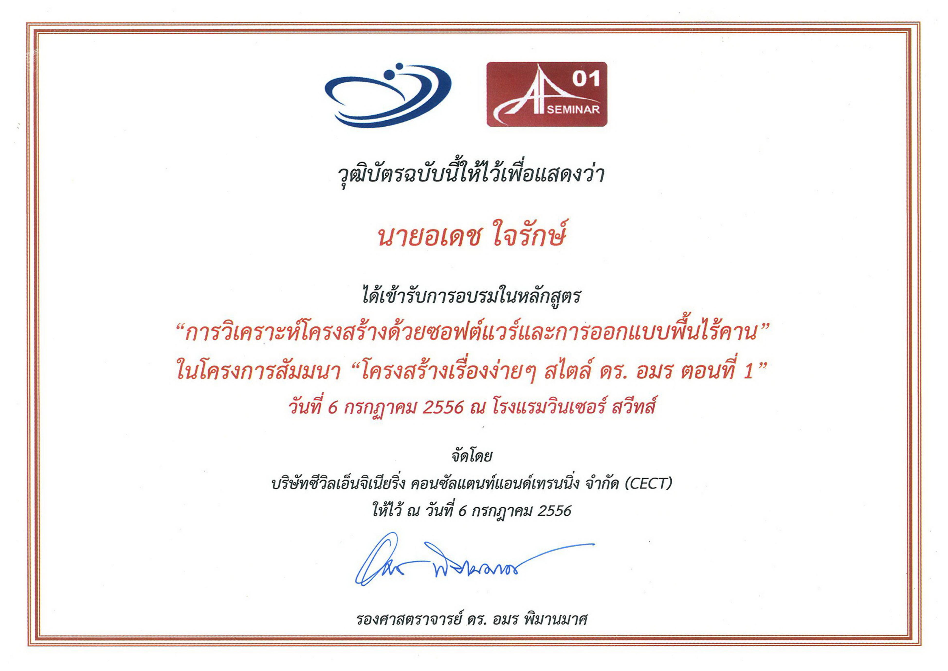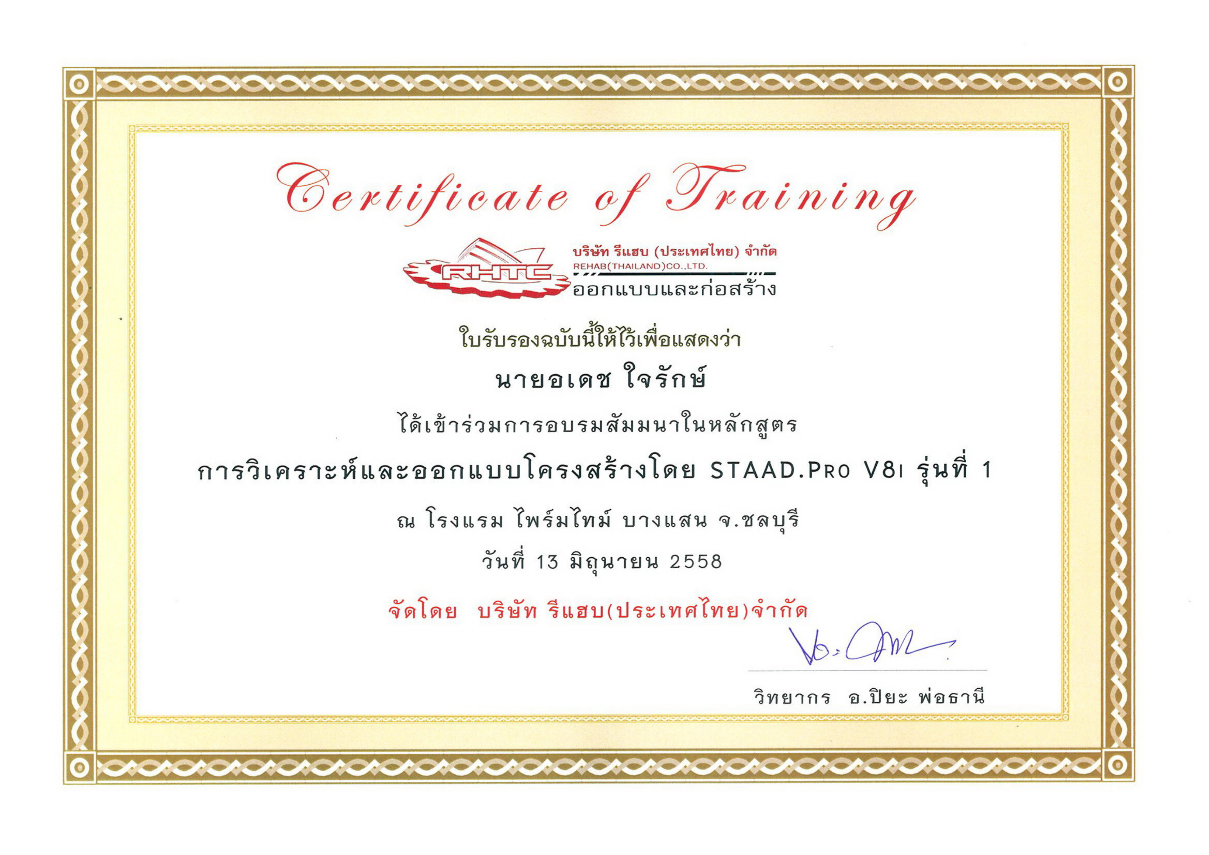 - Sunrise Park Project (Sunrise Park Samui Co., Ltd.), Samui, Surat-thanee, Thailand. Analysis-design structural building (Low-rise building), cad drawing and consultant. - Sunrise Residence Samui Project (Sunrise Residence Samui Co., Ltd.), Samui, Surat-thanee, Thailand. Analysis-design structural building (Low-rise building), cad drawing and consultant. - Sunrise Garden Project (Sunrise Garden Phuket Co., Ltd.), Thalang (Cheag-thalay), Phuket, Thailand. Consultant, recheck shop drawing and inspection for building structure. - Sunrise Palm Project (Sunrise Palm Phuket Co., Ltd.), Thalang (Cheag-thalay), Phuket, Thailand. Consultant, recheck shop drawing and inspection for building and retaining wall structure. Job interview for Structural design engineer, QS engineer and Supervisor position.