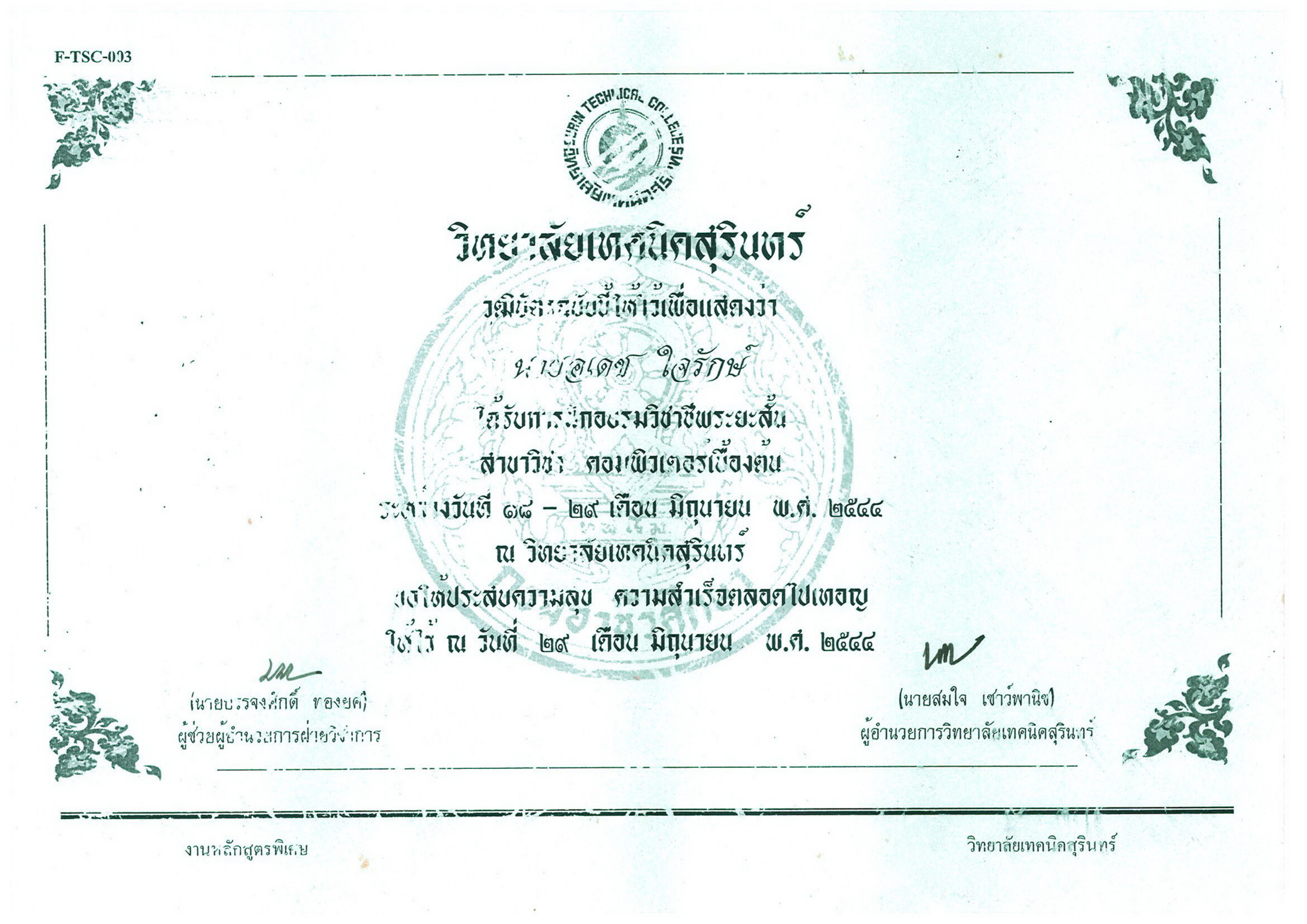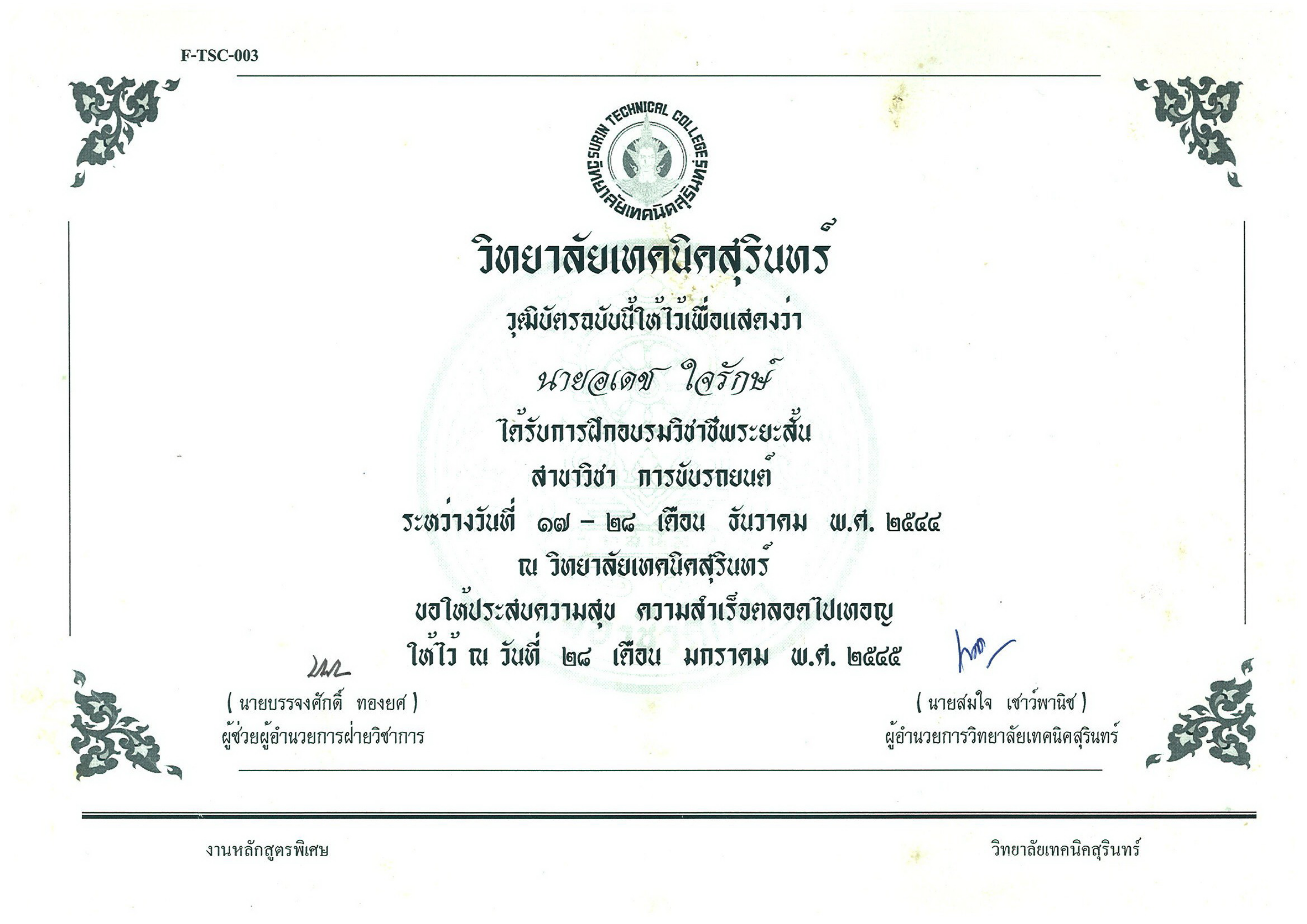 ผลการเรียน เกรดเฉลี่ย 4.00 ปีการศึกษา 2544 องค์การช่างเทคนิคในอนาคตแห่งประเทศไทย วิทยาลัยเทคนิคสุรินทร์