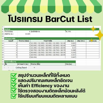 โปรแกรม CM+ Barcut 1D คำนวณการตัดเหล็ก/ชิ้นงาน 1 มิติ