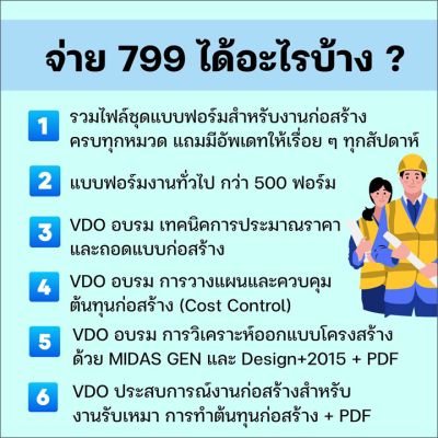 - แถม VDO อบรม เทคนิคการประมาณราคาและถอดแบบก่อสร้าง